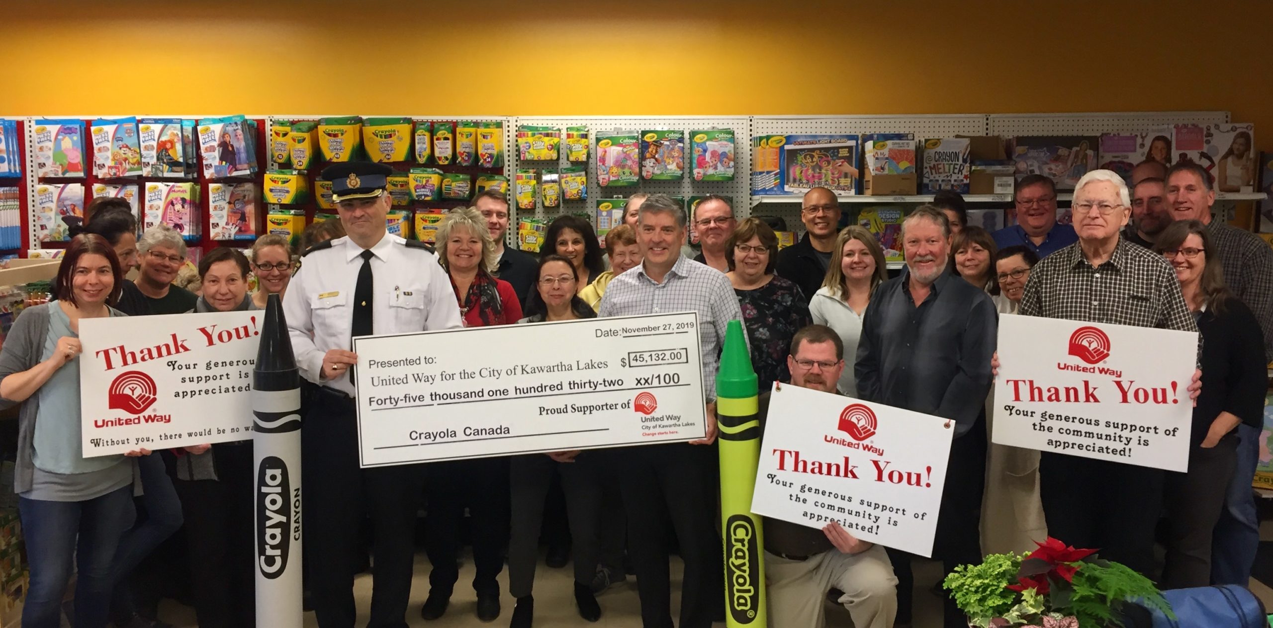 Two years ago, the team at Crayola Canada set a goal of raising $40,000 to reach a total of $1,000,000 donated to the United Way for the City of Kawartha Lakes over 29 years. This goal was exceeded in 2017, and the success continued in 2018 with another $42,620.80 raised. United Way for the City of Kawartha Lakes is excited to announce that 2019 was in fact the largest ever Crayola Sale, bringing in $45,132.00. United Way will use these funds to continue implementing their vision statement of crafting human care agendas within and across our communities, building coalitions around these agendas and increasing investments by expanding and diversifying resource development. The staff, board members and volunteers at United Way work tirelessly to ensure that these investments have recognizable impacts, and extend their thanks to Crayola for leading the way for other businesses to invest in our community.
