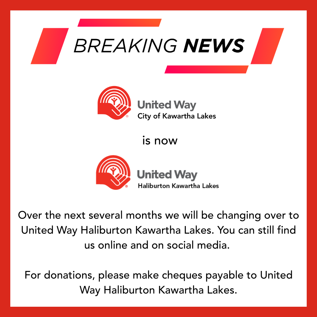 The staff and Board of your local United Way are pleased to share that we have undergone a change of name from United Way City of Kawartha Lakes to United Way Haliburton Kawartha Lakes.