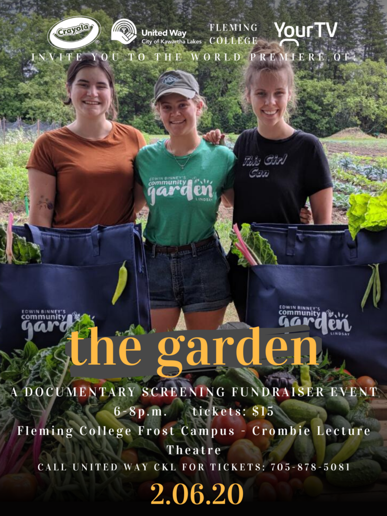 United Way for the City of Kawartha Lakes is excited to announce the world premiere of The Garden, an original documentary produced by YourTV. This documentary covers the first year of Edwin Binney’s Community Garden – an innovative food security initiative that has provided over three tons of fresh vegetables to non-profit agencies and food banks across the City of Kawartha Lakes.