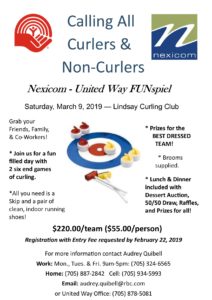 The United Way for the City of Kawartha Lakes Curling Funspiel will take place on March 9th, 2019. Registration for teams is now open! Contact our Community Investment Coordinator for more information!